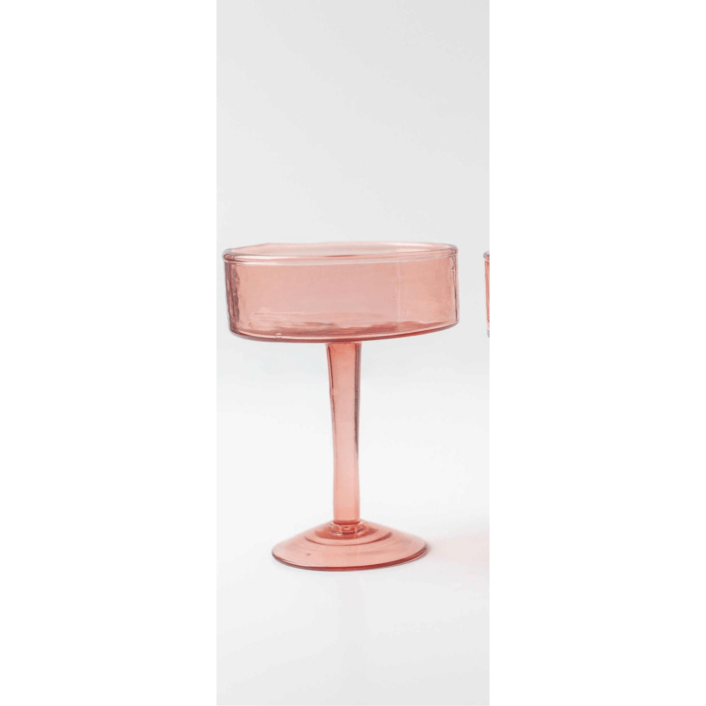 Handblown with a stunning hammered finish, these coupe glasses take your cocktails and mocktails to the next level. Crafted with care at a woman-owned business, each is ethically made from 100% recycled glass. This collection is made from colored glass (not sprayed) to ensure the color will last a lifetime. Please note that these items are 100% handmade and slight size variations and imperfections may occur.