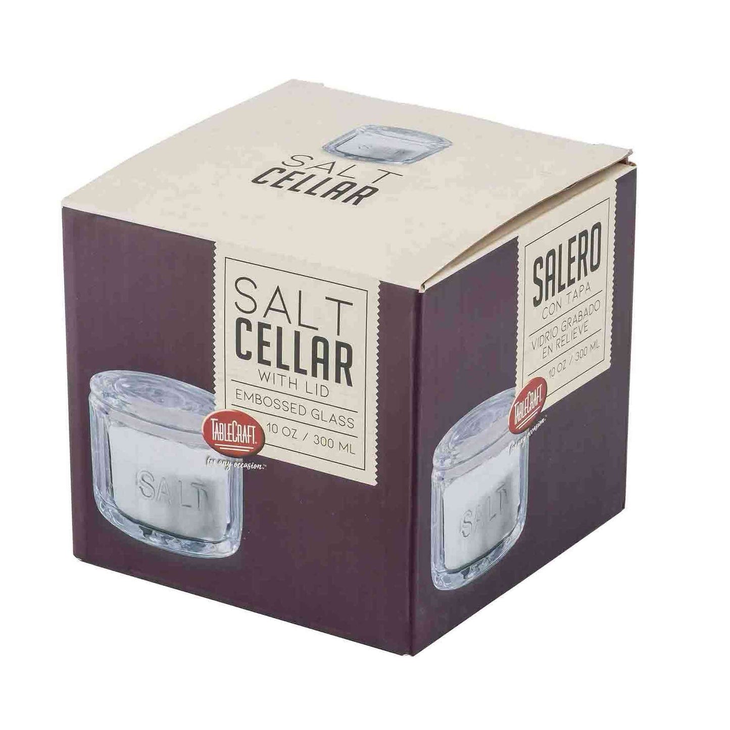 Add a touch of timeless charm to your kitchen with TableCraft’s Clear Glass Salt Cellar. Featuring “SALT” embossed on the side and a fitted lid, this 10 oz cellar keeps your salt stored neatly while looking beautiful on the countertop or table. Its classic, vintage-inspired design is equally functional and decorative for everyday cooking and serving.