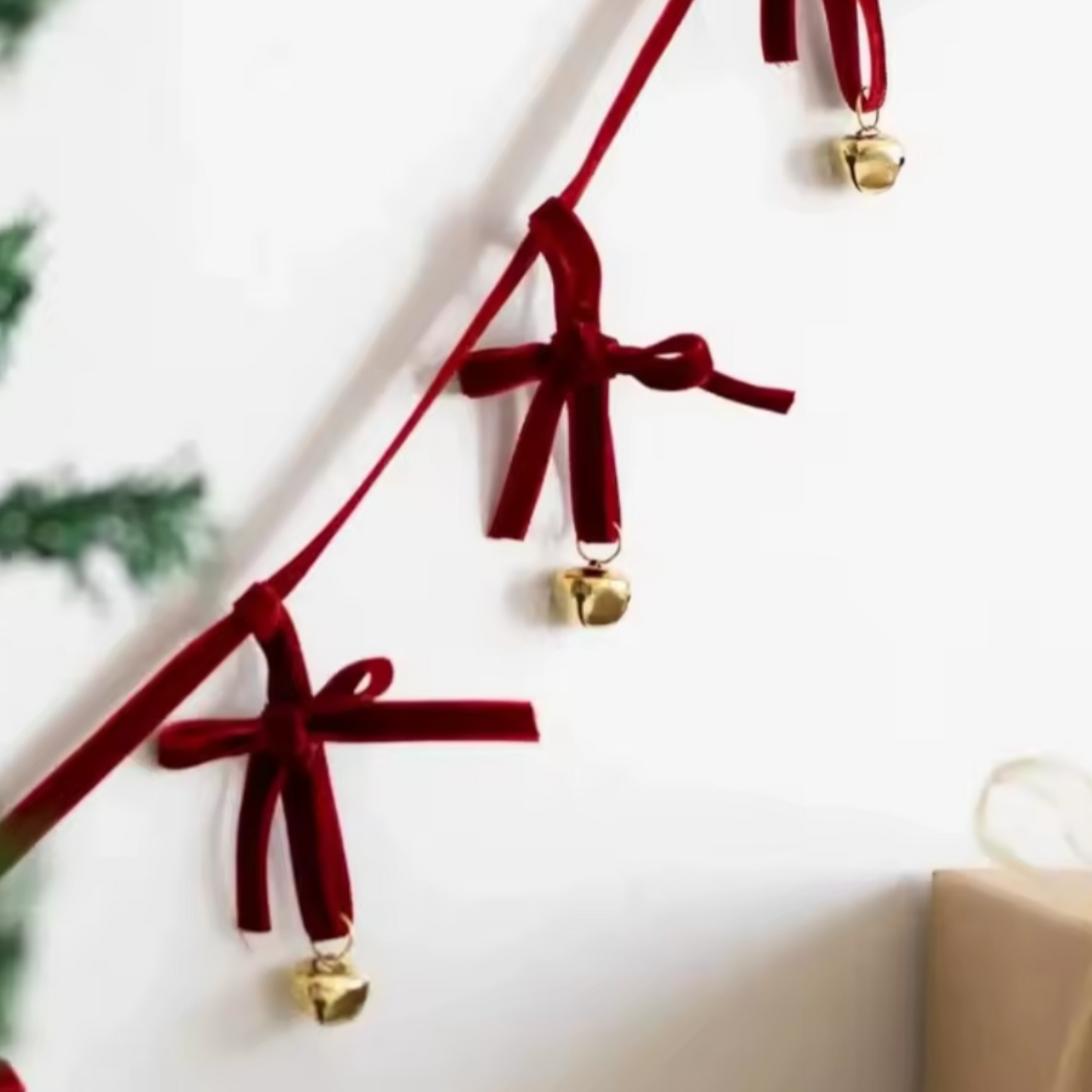 Velvet Bow Garland – 10 Bows with Bells